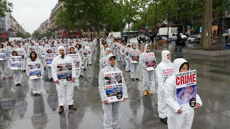 Manifestation à Paris contre la recherche scientifique sur les animaux