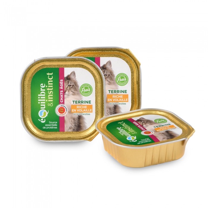 Pâtée élaborée à partir de viandes fraîches pour chats âgés à partir de 10 ans.
