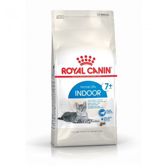 Aliment spécialement conçu pour les chats d'intérieur de plus de 7 ans.