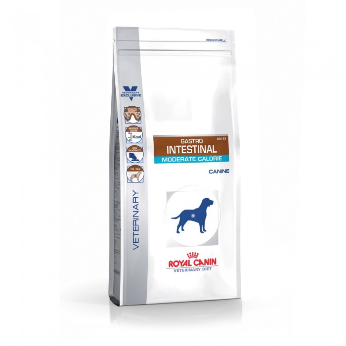 L'aliment Royal Canin Gastro Intestinal Moderate Calorie est un aliment pour chien adapté en cas de troubles digestifs pour lesquels une alimentation pauvre au graisses est recommandée.