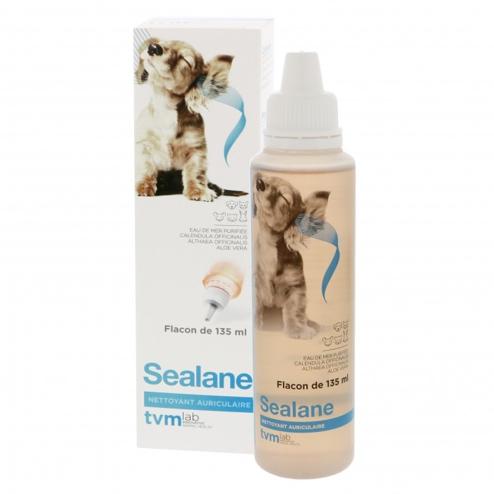 Solution à base d'eau de mer purifiée pour le nettoyage des oreilles des chiens, chats, furets, lapins et rongeurs.