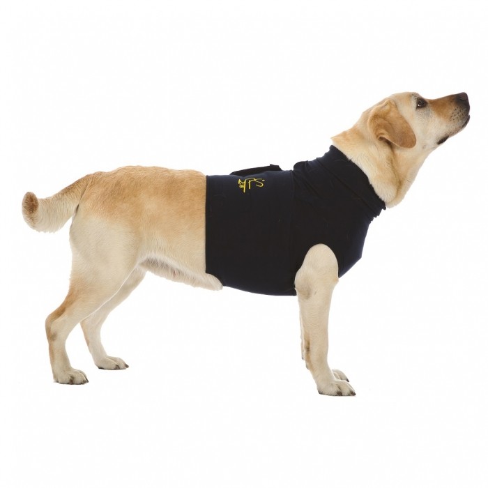 T-shirt de protection 3 en 1 pour chien en convalescence. Protège les plaies, réduit l'anxiété et permet le port d'une perfusion.