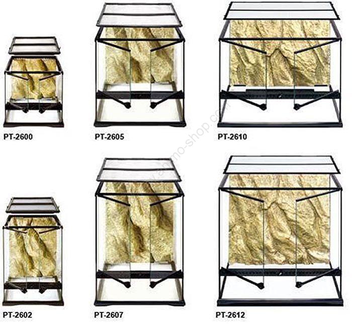 Terrariums en verre : Le terrarium Exo Terra, conçu par des herpétologistes européens, est l'habitat idéal pour les reptiles et les amphibiens. Les portes avant facilitent l'entretien et le nourrissage. Un loquet est spécialement conçu pour empêcher les reptiles de s'enfuir et il permet d'ouvrir les portes séparément. Le couvercle grillagé entièrement amovible permet aux rayons U.V.B. et infrarouge de pénétrer et facilite l'accès pour décorer et nettoyer le terrarium. À l'arrière du couvercle grillagé, de chaque côté, se trouvent cinq entrées refermables pour fils et tuyaux.